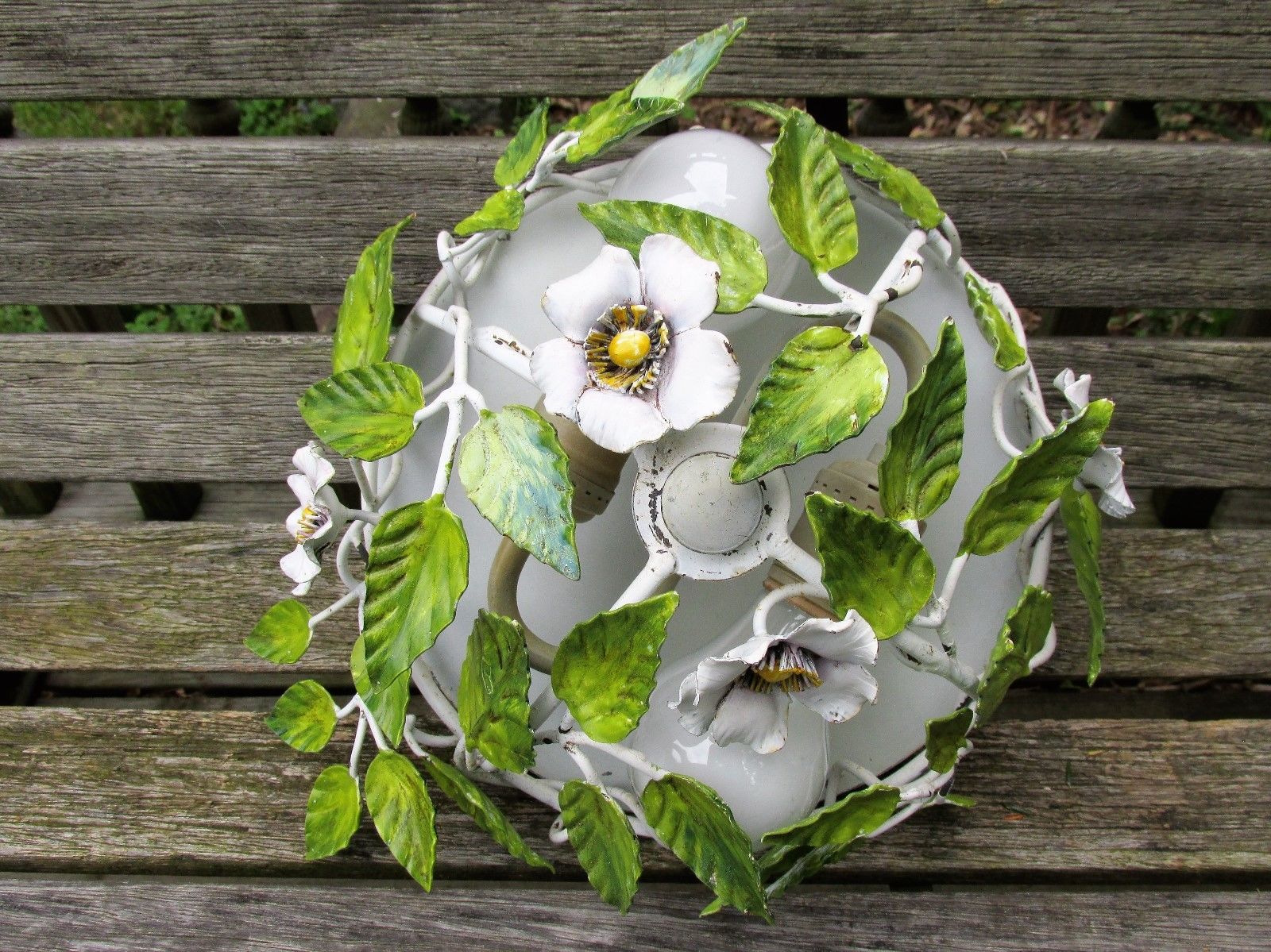 Title (ebay affiliate link): Vintage French Country Style Metal Floral Vine Toleware Ceiling Light