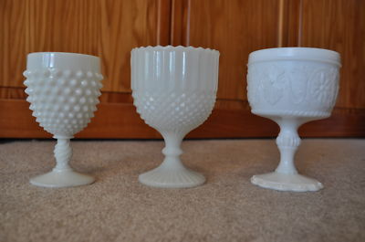 Vintage Milk Glass Vases Goblets Hobnail Flower Scrolls