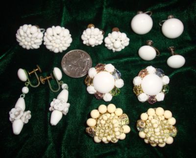 Vintage Lot 7 Milk Glass Crystals Earrings Wear Crafts