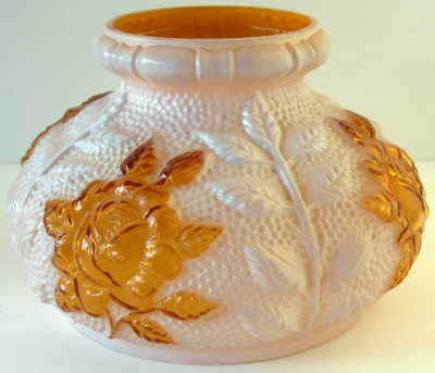 Vintage Amber Frosted Milk Overlay Floral Lamp Shade