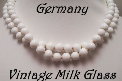 VINTAGE White MILK GLASS Bead Choker NECKLACE Germany