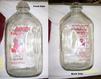 Milk Bottle Jar Jug Vintage Half Gallon Adohr Farms