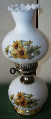 VINTAGE ORNATE BRASS & PAINTED MILKGLASS HURRICANE LAMP