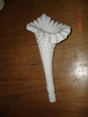 one Fenton epergne horn milkglass hobnail 8"