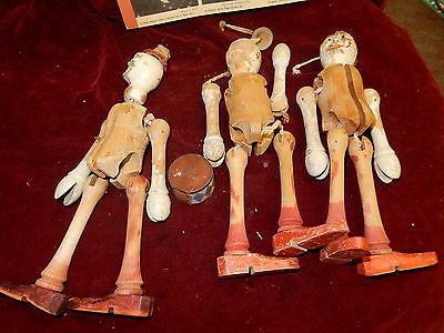3 Unique Vintage Antique Carved clown Puppet Wood Folk Art Painted Jointed Early
