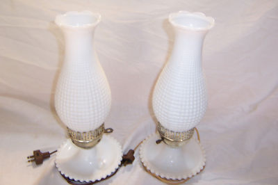 Lot of 2 Milk Glass Hobnail Hurricane lamps