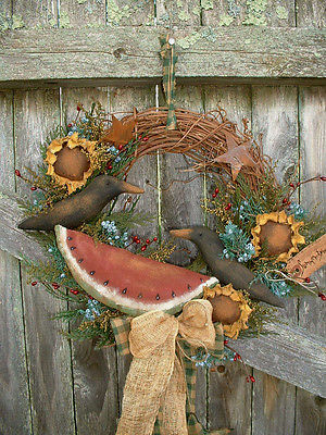 Title (ebay affiliate link): PRIMITIVE 12" GRAPEVINE WREATH~WATERMELON~CROWS~SUNFLOWERS~STARS