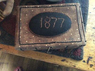 Title (ebay affiliate link): Primitive early style fabric handmade box,, 1877' brown and black fabric ,fun