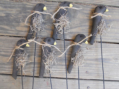 Primitive Grungy Black Crow Ornies Pokes Crock Fillers Decor Set of 6