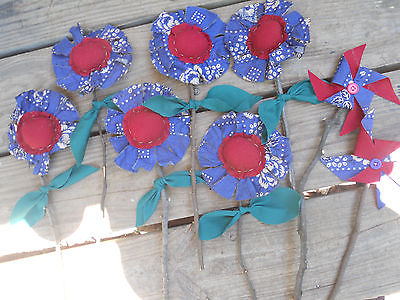 Title (ebay affiliate link): Primitive Americana Bandana Fabric Flower Pokes Crock Filler Decor Set of 8