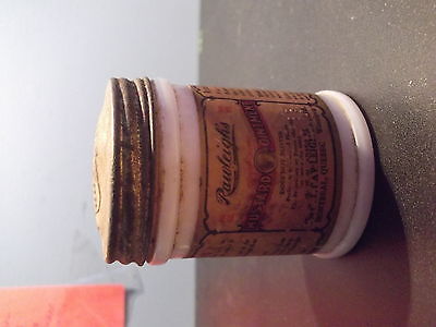 RAWLEIGH'S MUSTARD OINTMENT-RARE CDN MILK GLASS BOTTLE WITH LABEL-NICE