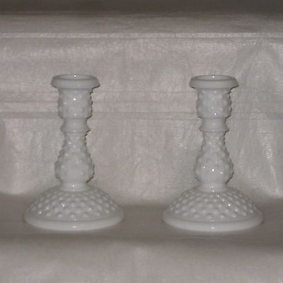 Title (ebay affiliate link): Vintage Pair Fenton Milk Glass Hobnail Candlesticks, Signed