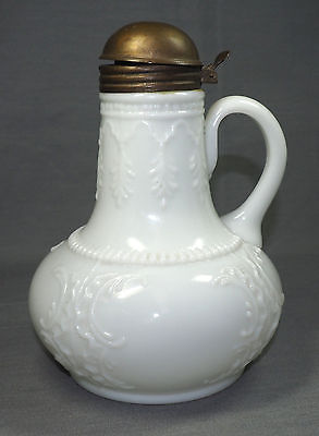 Vintage 6.75" White Milk Glass Cream Pour Spout Jug Bronze Lid
