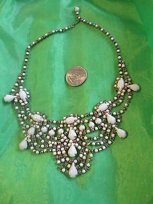 GORGEOUS! Vtg JulianaTear Drop Milk Glass & Carnival Glass Bib Necklace