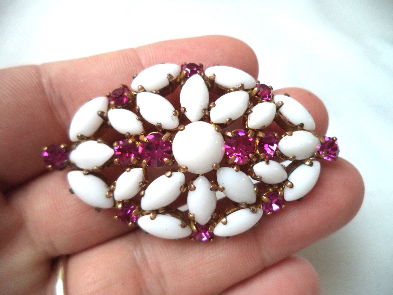 Title (ebay affiliate link): STUNNING VINTAGE ESTATE SIGNED GERMANY RHINESTONE & MILK GLASS BROOCH!!! G2049
