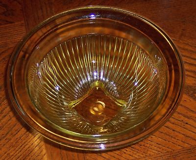 LARGE VINTAGE DEPRESSION GLASS BOWL GREEN RIBBED