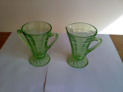 Green depression glass creamer and sugar set