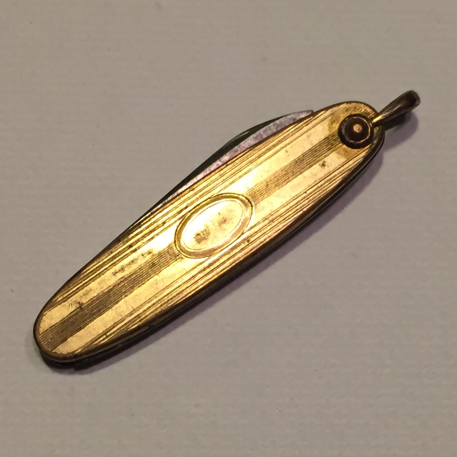 Title (ebay affiliate link): Vtg Gold Filled Toned Art Deco Watch Fob Keychain Pocket Knife Mini SB Co