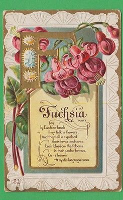 Fuchsia/ large golden "F" gold borders/ embossed postcard/pretty