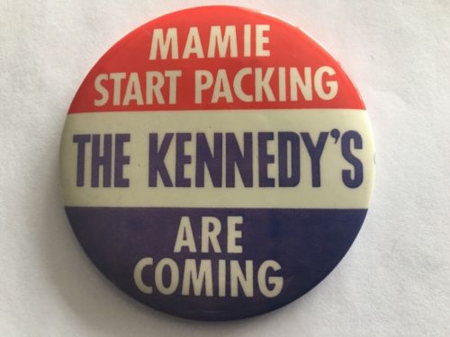 Title (ebay affiliate link): VTG 1960s JFK 3.5" Campaign Pin "Mamie Start Packing The Kennedys Are Coming"