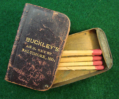 Title (ebay affiliate link): Early Adv. Leather Covered Book Shape Matchsafe - Buckley's, Gay St., Baltimore