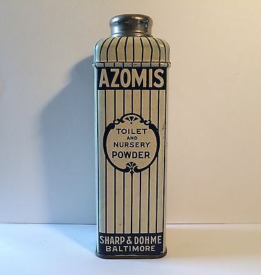 Title (ebay affiliate link): Vintage Azomis Toilet & Nursery Powder Tin Sharp & Dohme Baltimore with contents