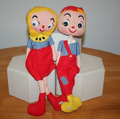 COLLECTIBLE RAGGEDY ANN AND ANDY STYLE DOLLS PAIR VINTAGE JAPAN 14" TALL NOS
