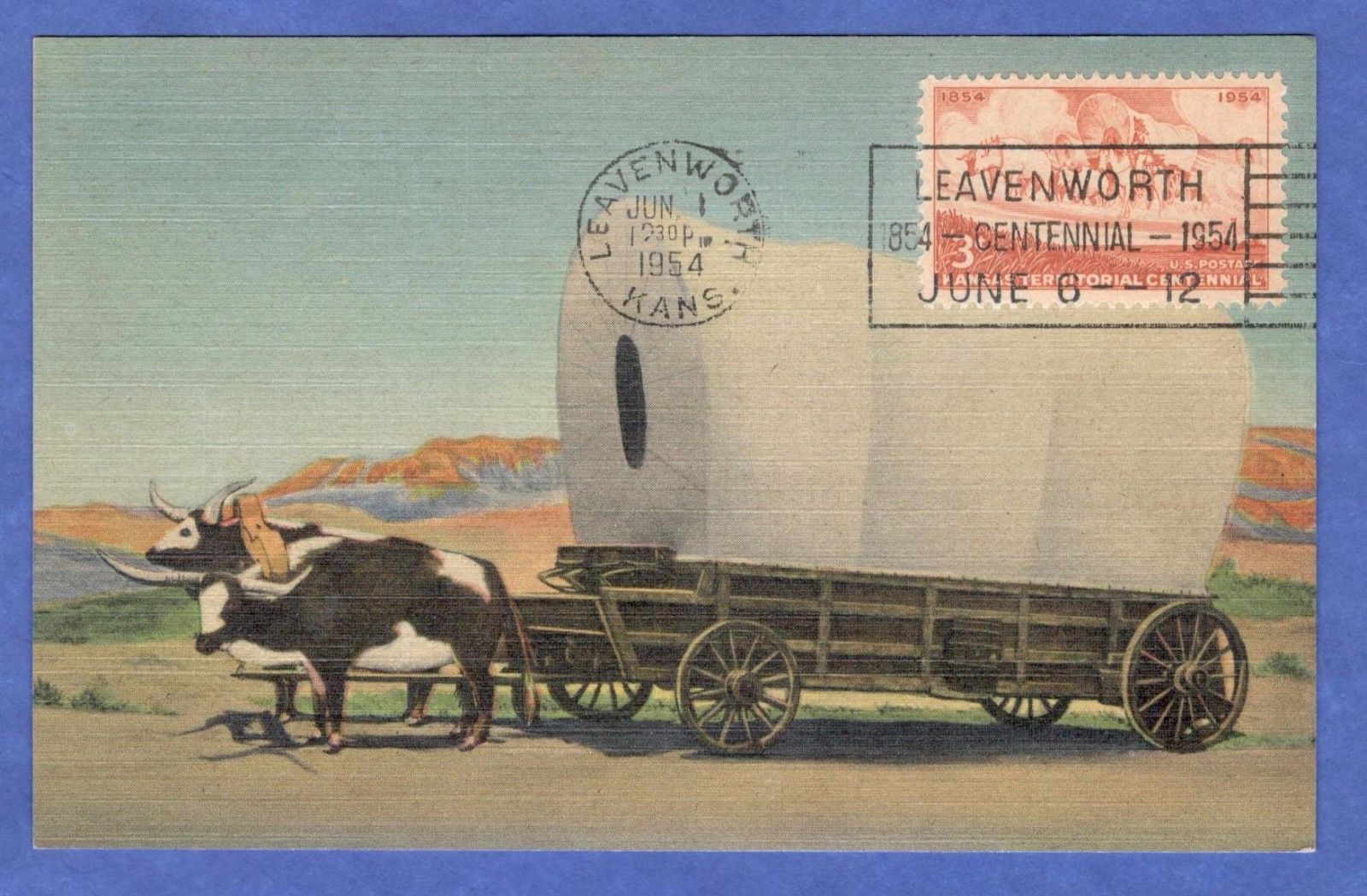 Title (ebay affiliate link): Covered Wagon Prairie Schooner Cancel 1st Day OfSale Linen Maximum Postcard 1954