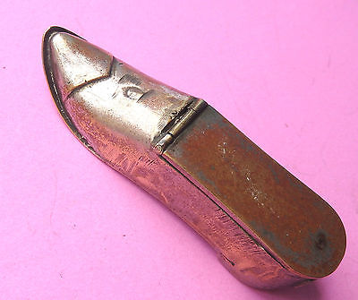 ANTIQUE BRASS SHOE CIGAR CUTTER & MATCH SAFE,STRIKER SOLE.