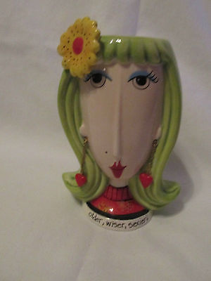 Title (ebay affiliate link): DAISY LADY VASE WITH DANGLING EARRINGS "OLDER ,WISER, SEXIER"