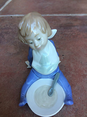 Nao by Lladro, Little Boy Wearing a Bib with Plate and Spoon