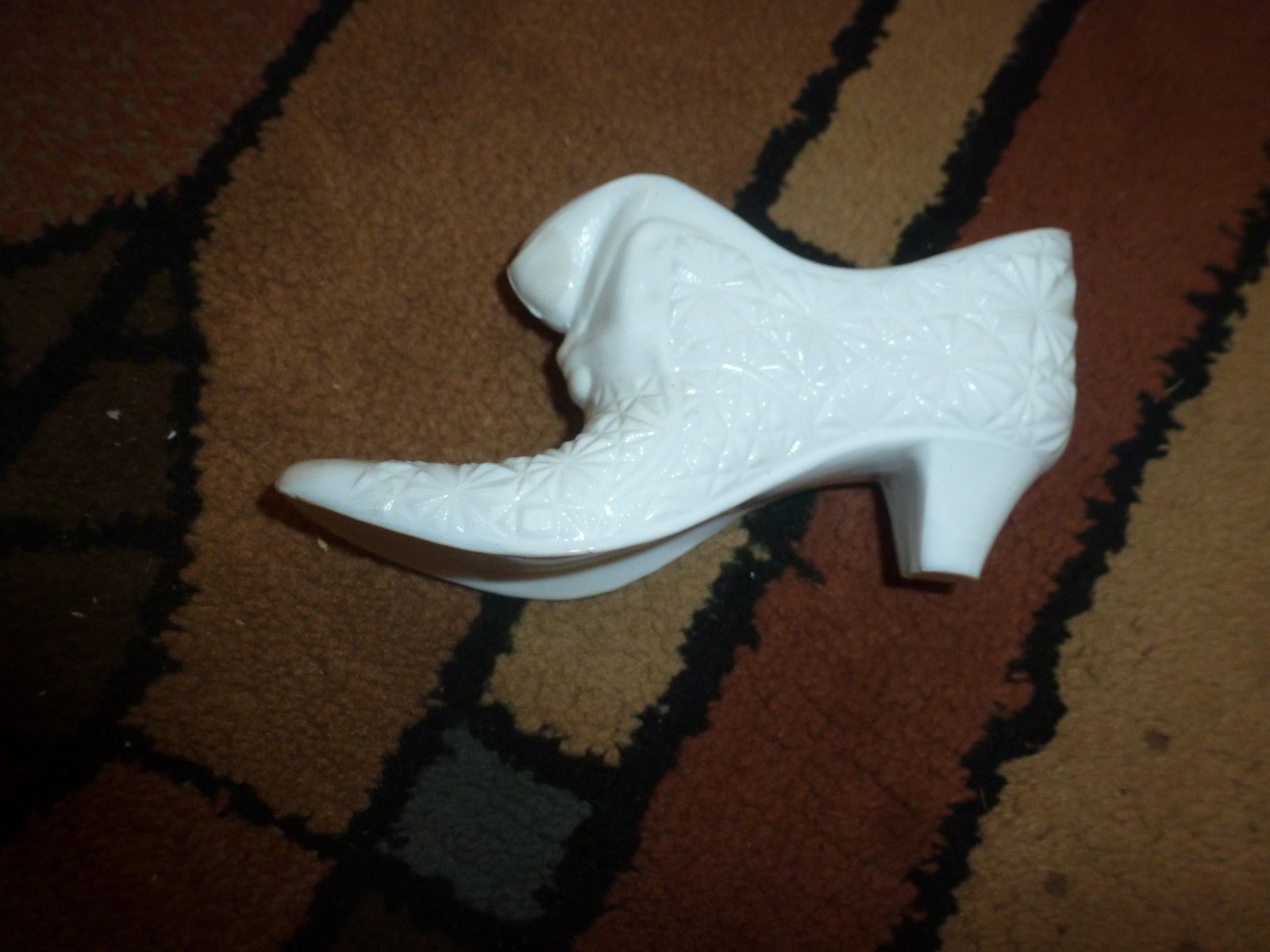 Title (ebay affiliate link): Vintage Glass Shoe - Fenton Milk Glass Button & Bow Slipper