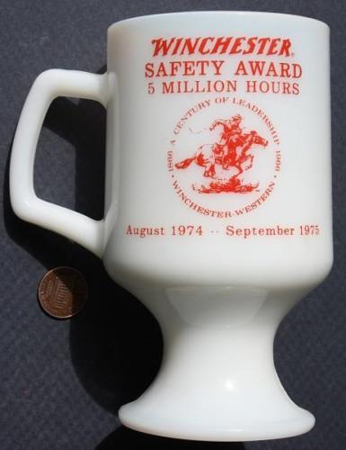 Title (ebay affiliate link): 1976 Winchester Firearms Safety Award Bicentennial milkglass mug-Cowboy & Horse!