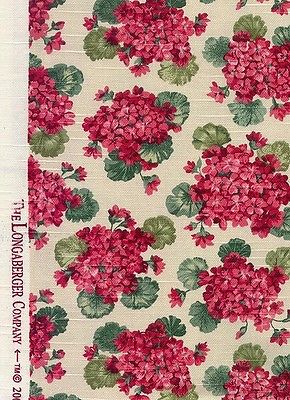 2002 Longaberger Geranium Fabric 1/2 yard 36 x 18 New in zip bag