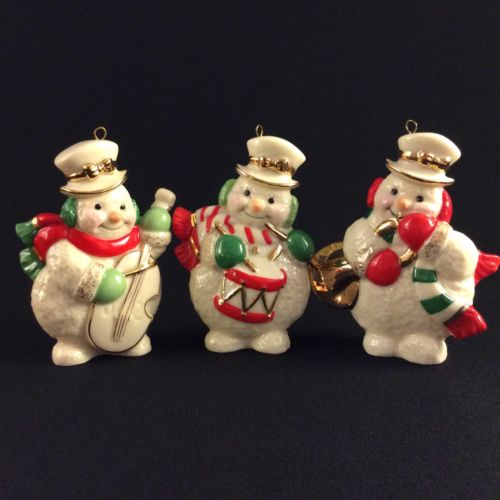 Title (ebay affiliate link): 2003 Lenox Christmas Ornament Tin Box Set of 3 Snowmen Playing Instruments
