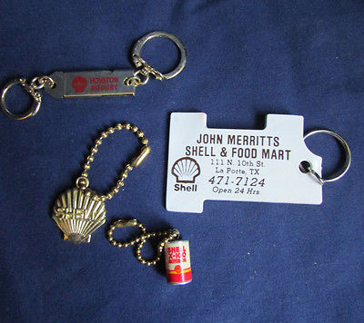 Title (ebay affiliate link): FOUR VINTAGE SHELL OIL KEY CHAINS RINGS Nail Clippers Ejecting Caddy