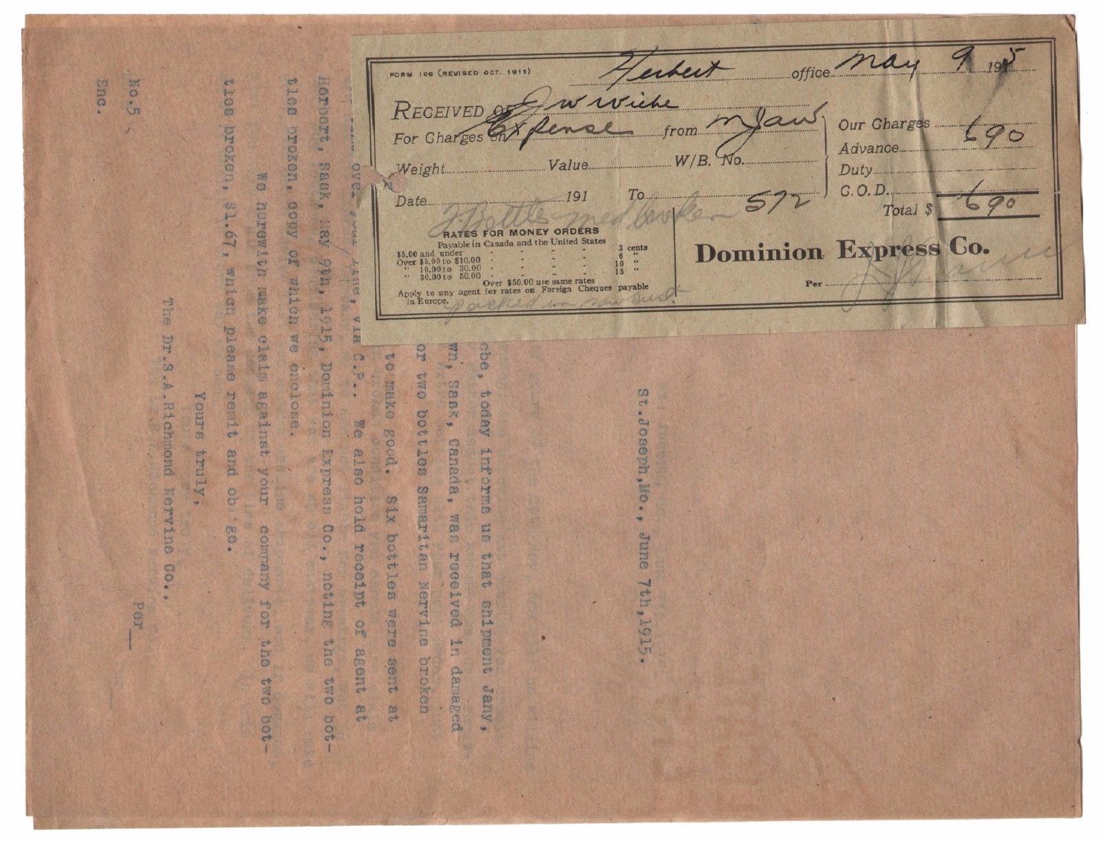 1915 DOMINION EXPRESS COMPANY - RAILROAD SHIPMENT DOCUMENTS