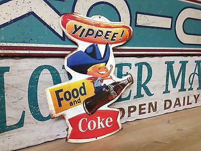 COCA COLA YIPPEE FOOD AND COKE EMBOSSED METAL SIGN,DINER,CAFE SHOP,RESTAURANT.