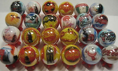 24 COCA COLA SODA POP GLASS MARBLES 5/8 SIZE COLLECTION LOT + STANDS