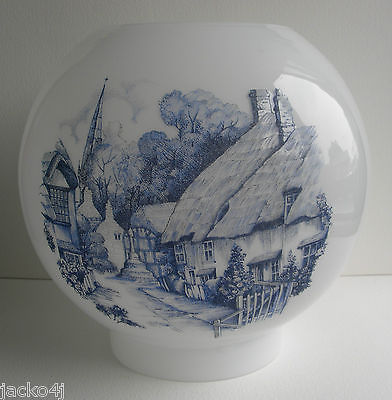 Title (ebay affiliate link): MILK GLASS GLOBE OIL LAMP SHADE WITH BLUE OLDE WORLD VILLAGE SCENE 4" GALLERY