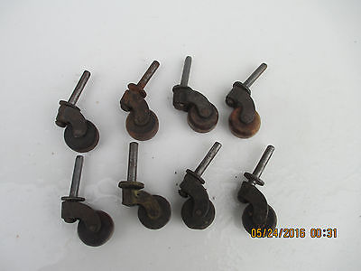 8 Vintage Furniture Casters with 1"x.5" Wood Wooden Wheels 1.25" Shaft