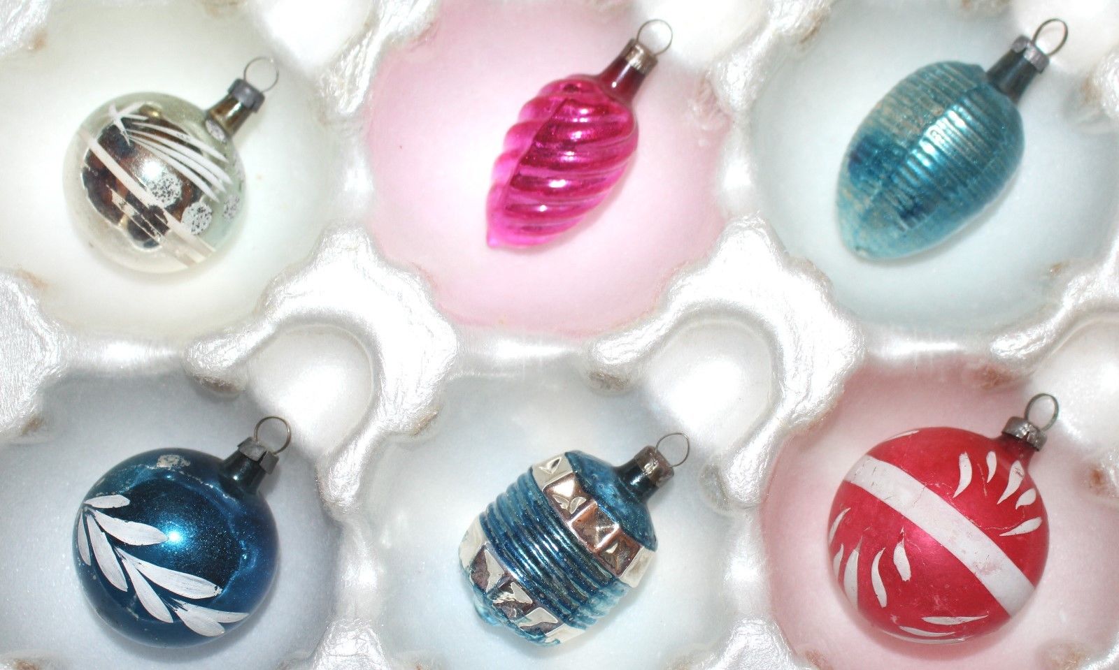 Title (ebay affiliate link): Six Miniature German Glass German Ornaments. Ovals, Geometrics, Spheres. 1900s.