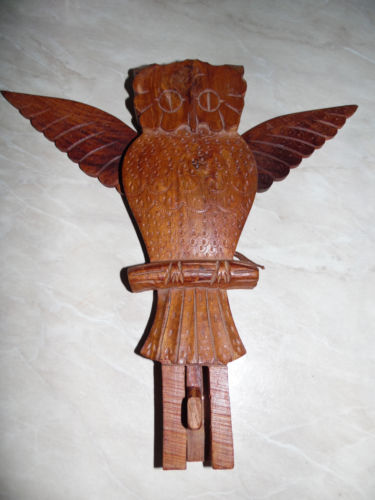 Unique Vintage Carved Wooden Owl w/Moveable Wings - Hangs on Wall