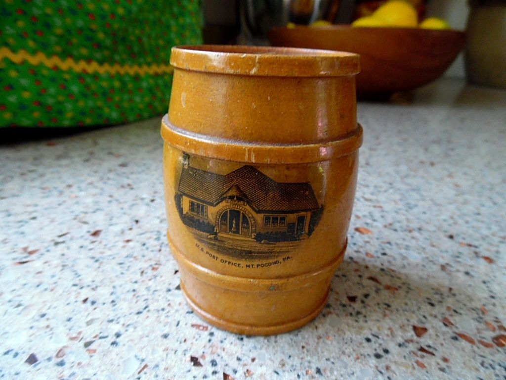 Antique Mauchline Ware Treen Treenware Barrel bank. Pocono Mountain mt. PA. AAFA