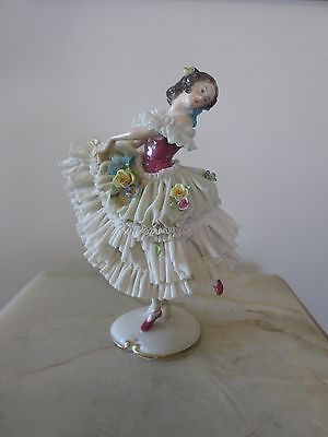 Beautiful German Dresden Volkstedt Porcelain Lace Figurine Dancer