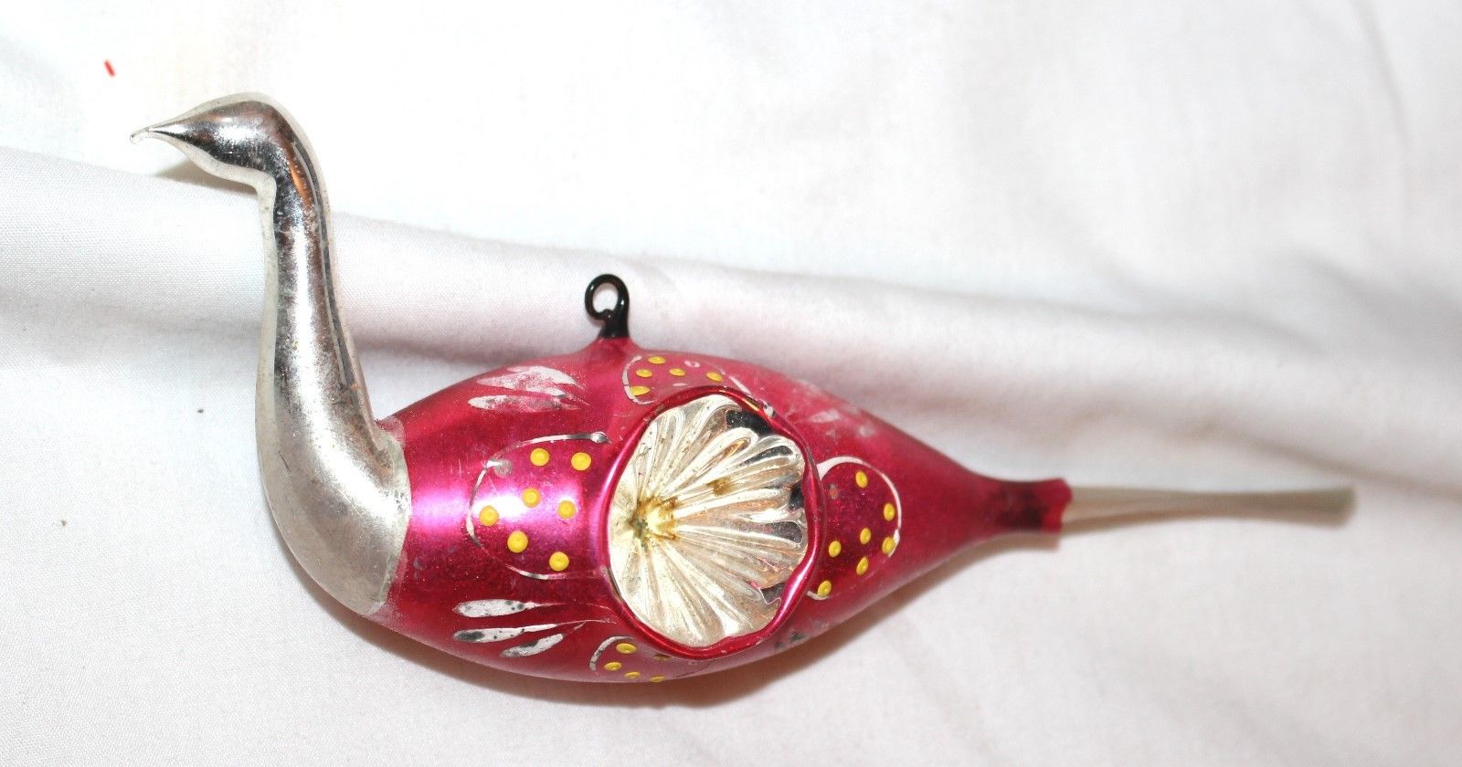 Title (ebay affiliate link): Early 1930s Glass Red Swan. Indent on both sides. Spun Glass Tail. German Orn.