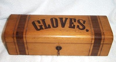 ANTIQUE EDWARDIAN INLAID WOOD LIDDED GLOVE BOX WITH LOCK AND KEY