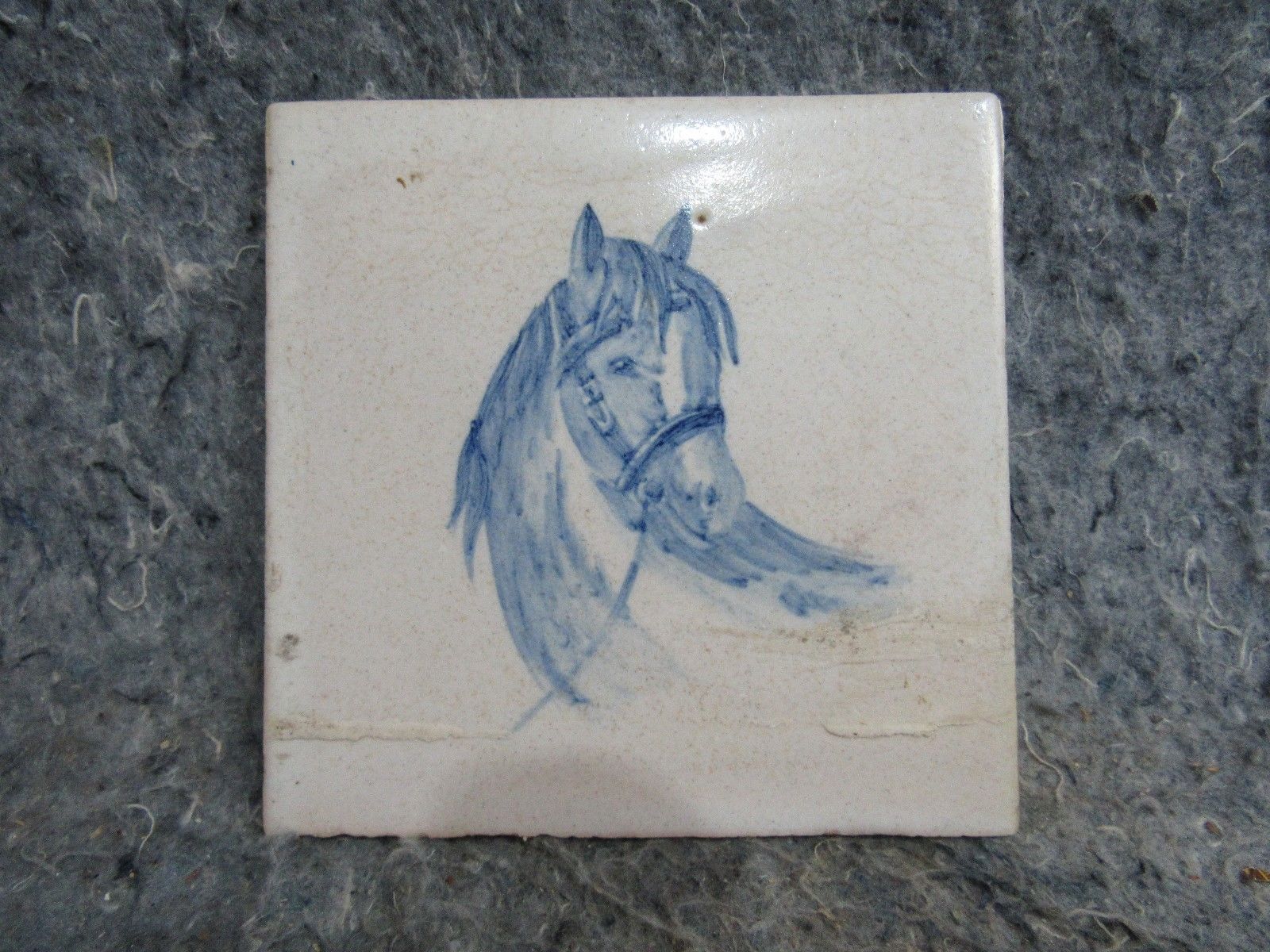 Title (ebay affiliate link): Vintage Portugese Art Tile Trivet Equestrian Horse Bit Santana Blue Delf Crop