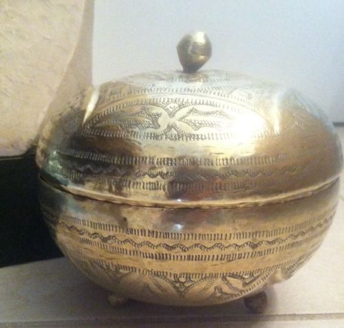 Rare Gorgeous Nupe Bida Hand Engraved Brass Bowl And Cover (Africa)