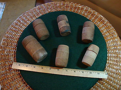 Antique wooden "barrel" containers (6) for nails & carpet tacks w/paper labels